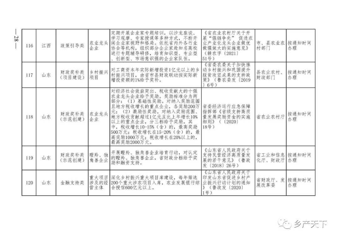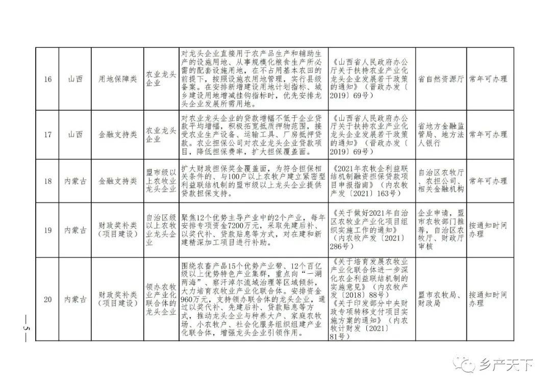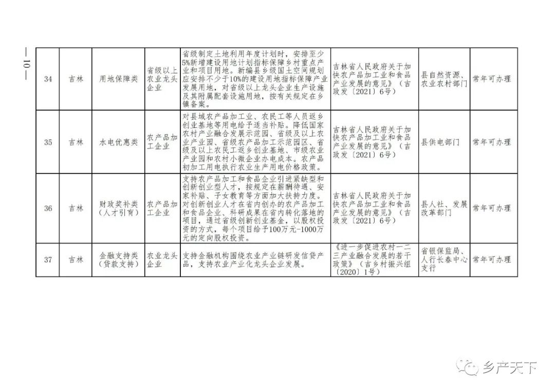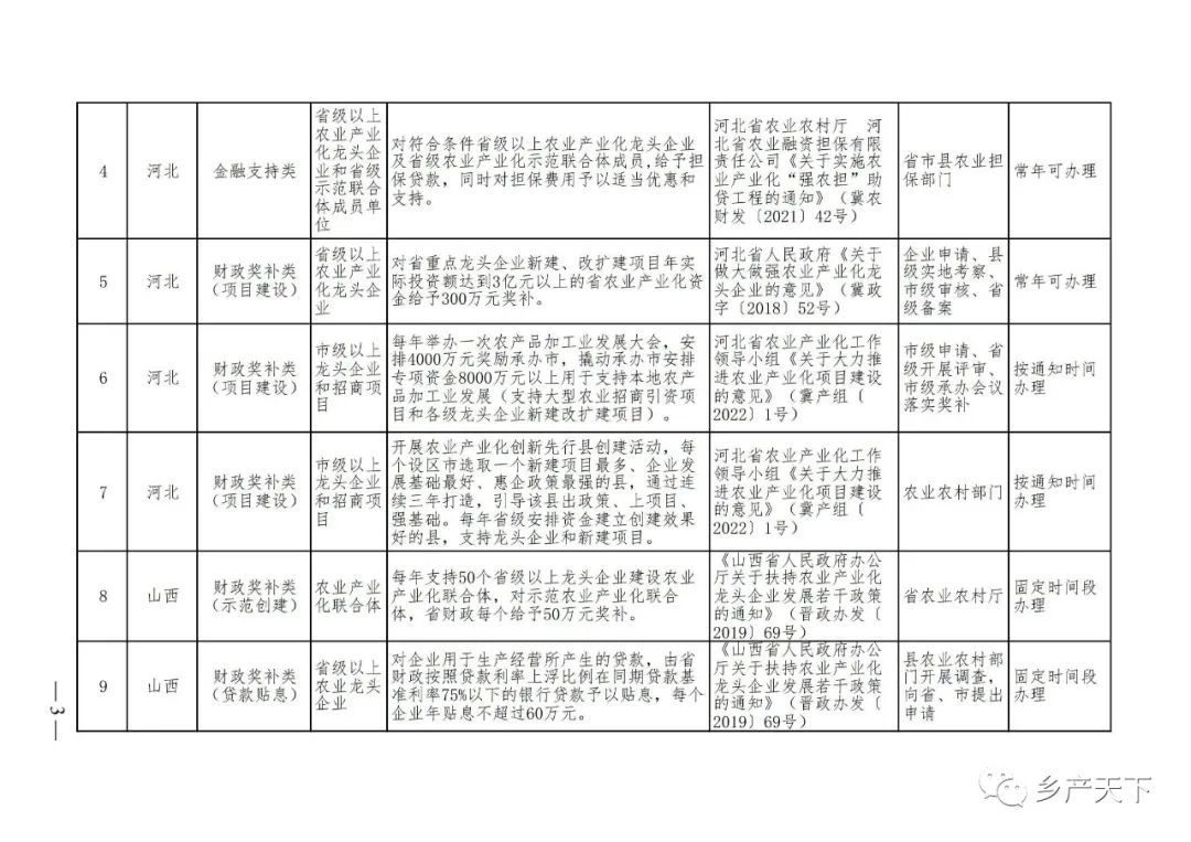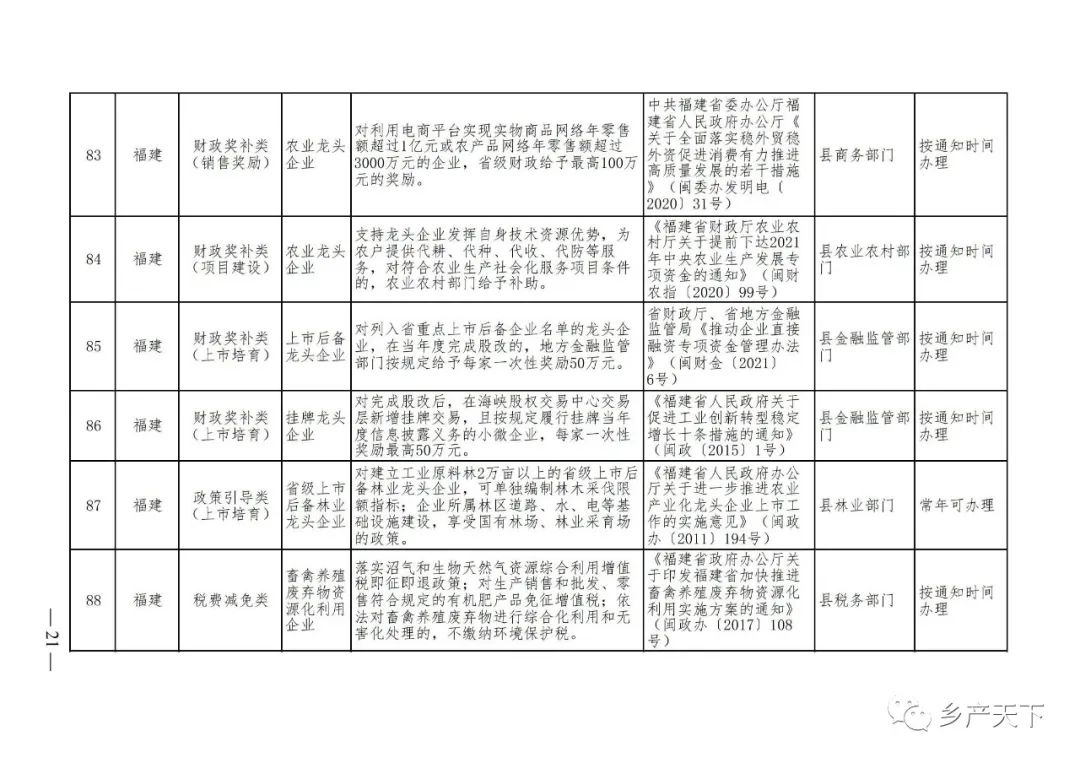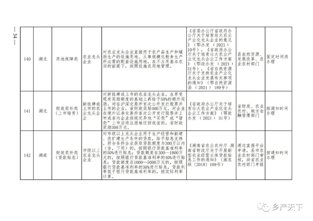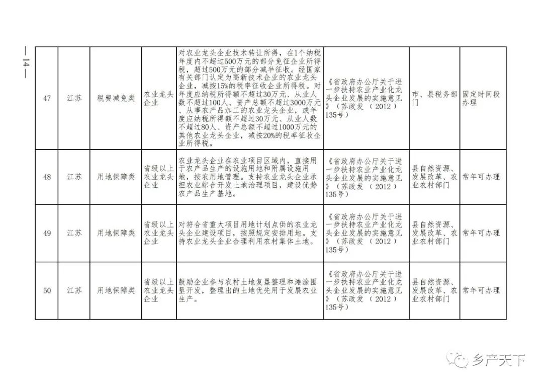 農業產業化龍頭企業支持政策清單