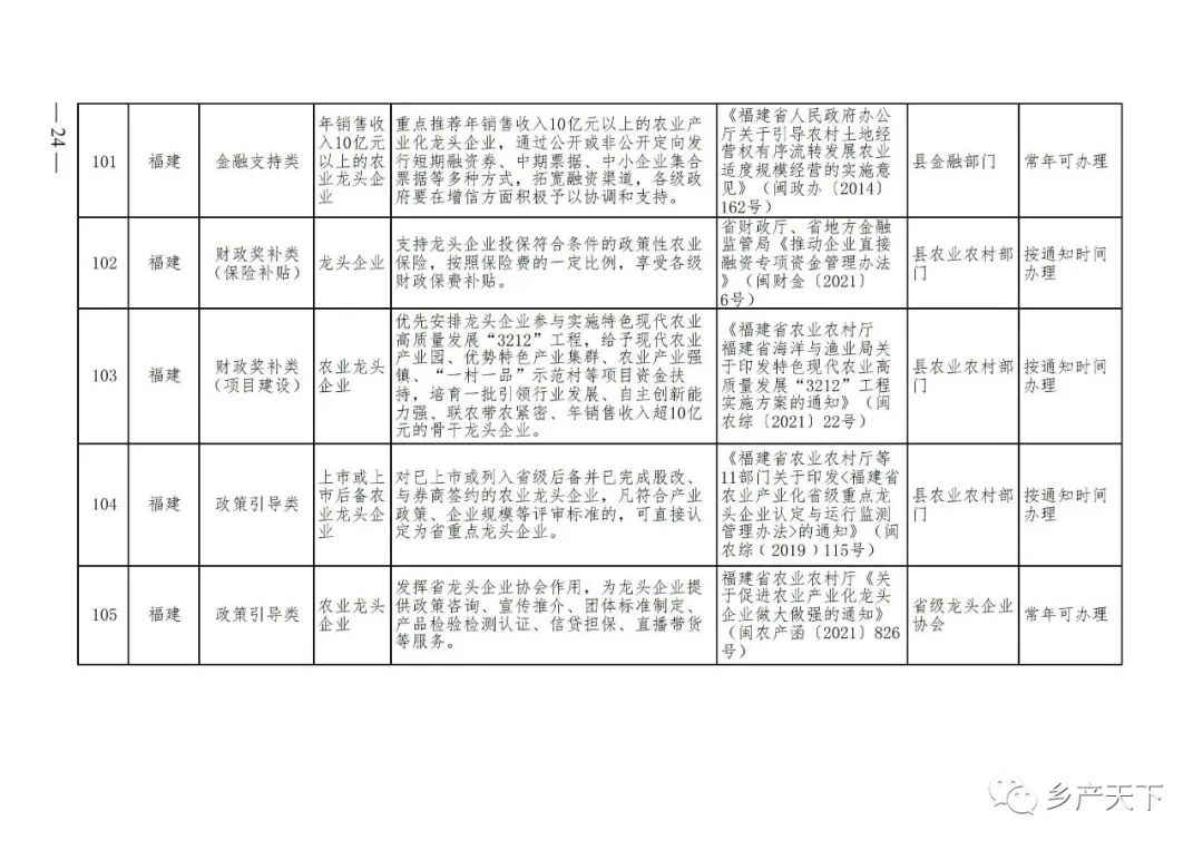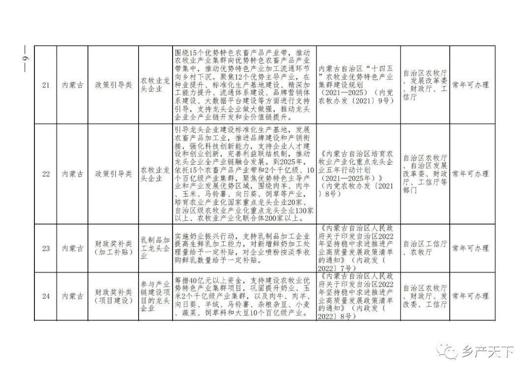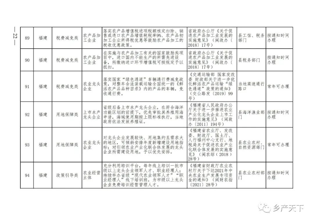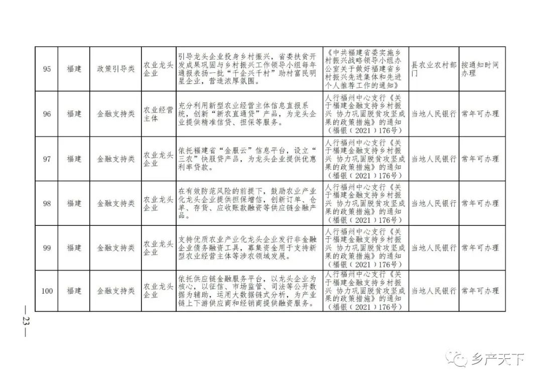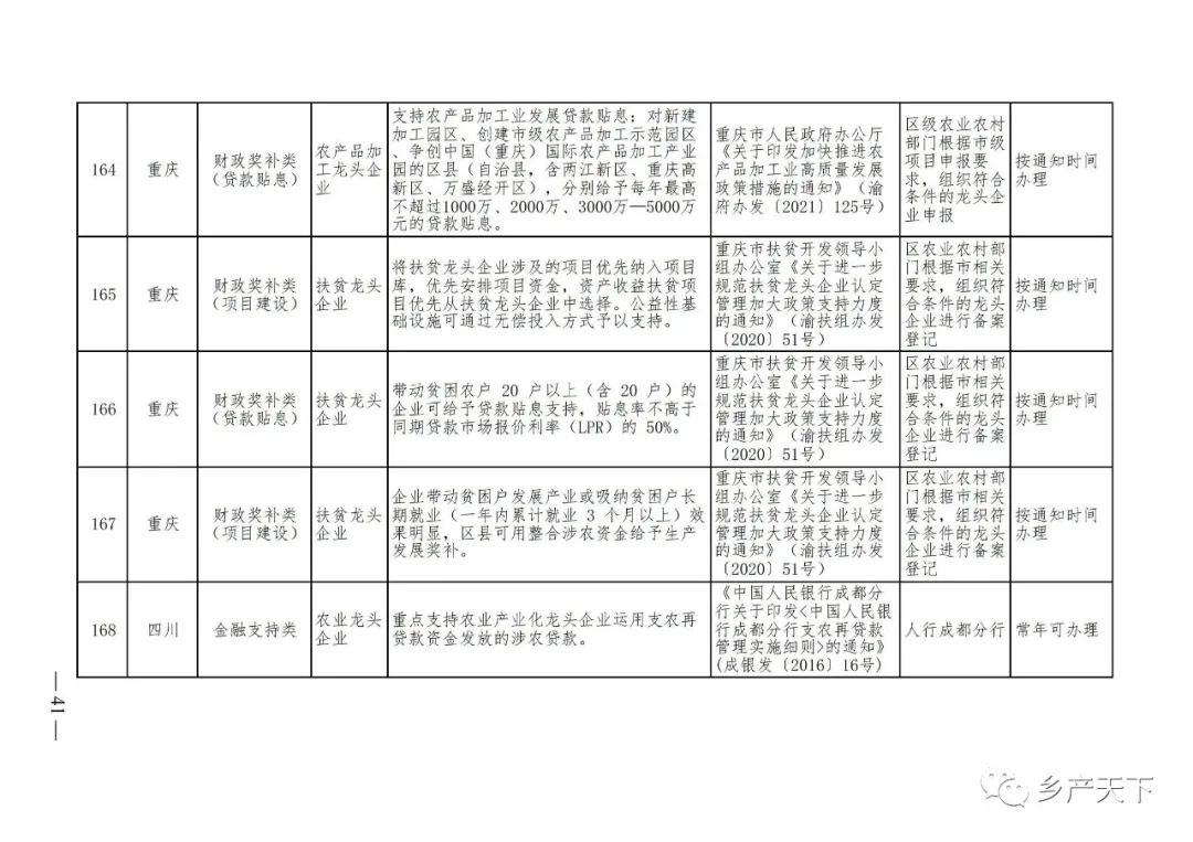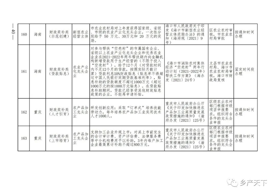 農業產業化龍頭企業支持政策清單