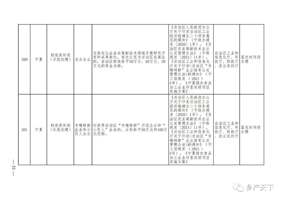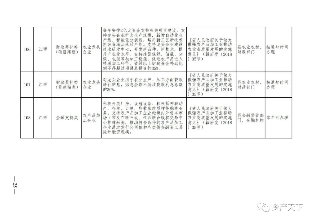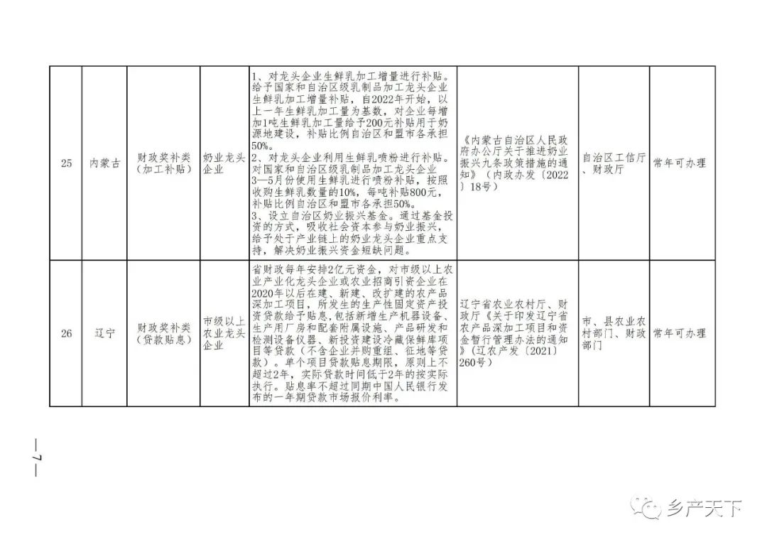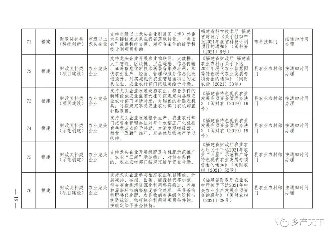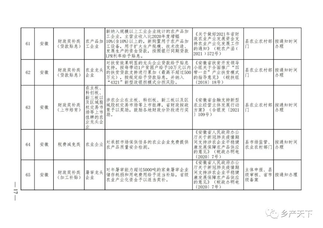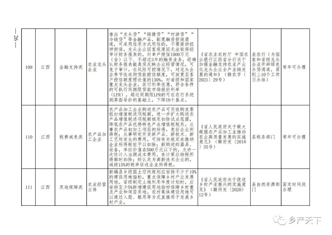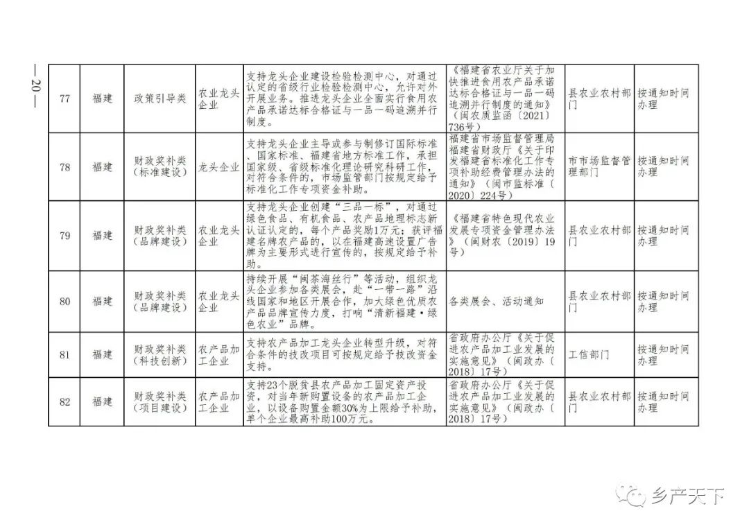 農業產業化龍頭企業支持政策清單