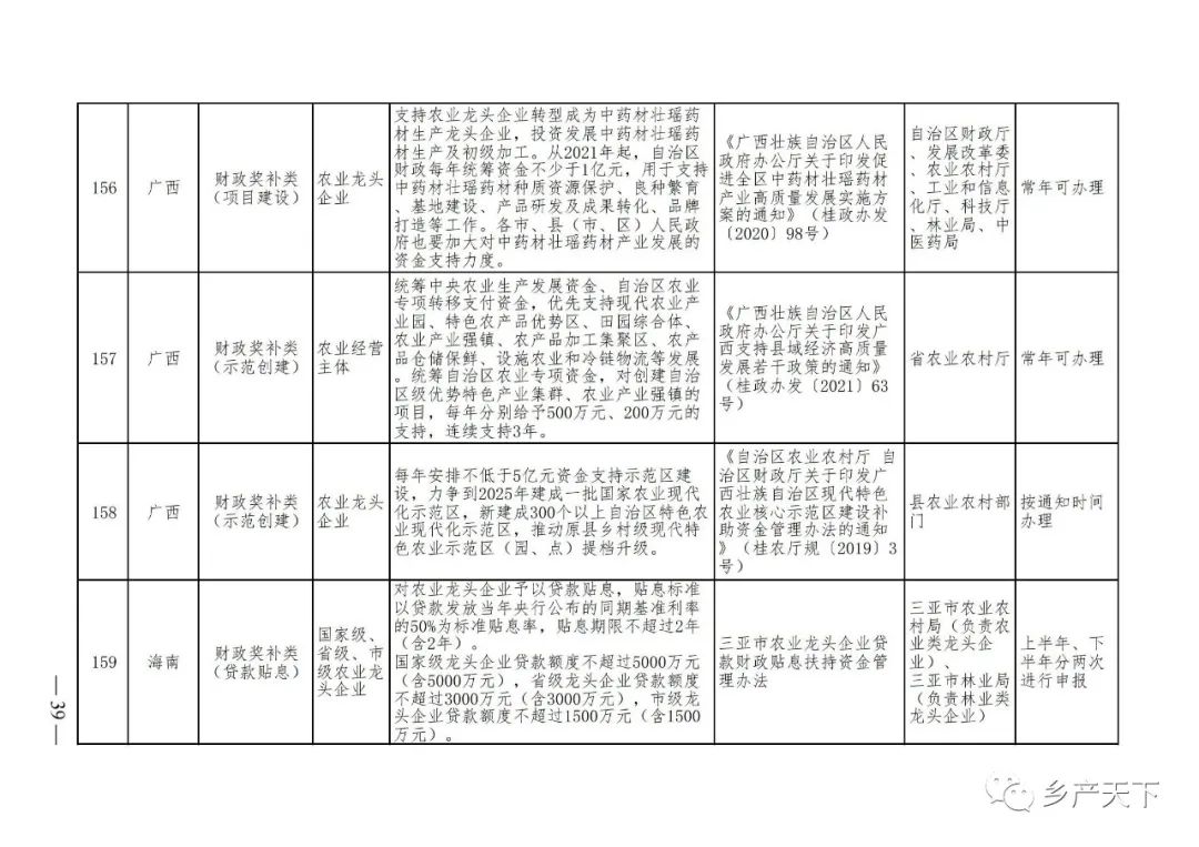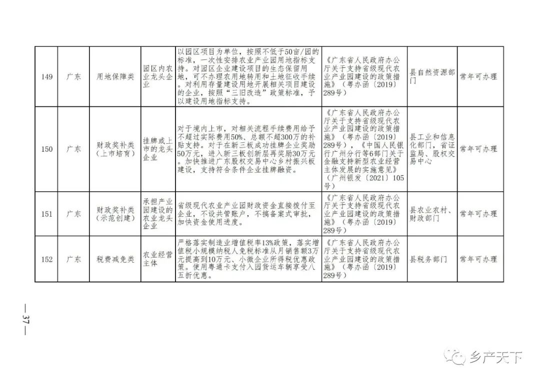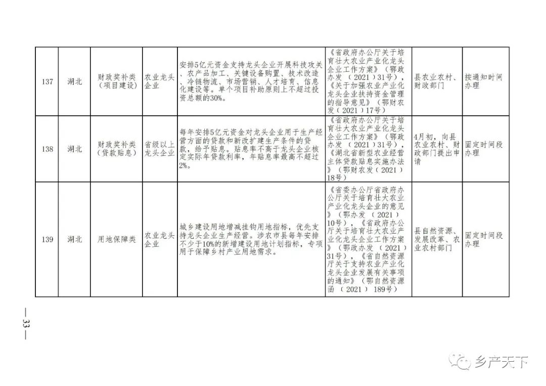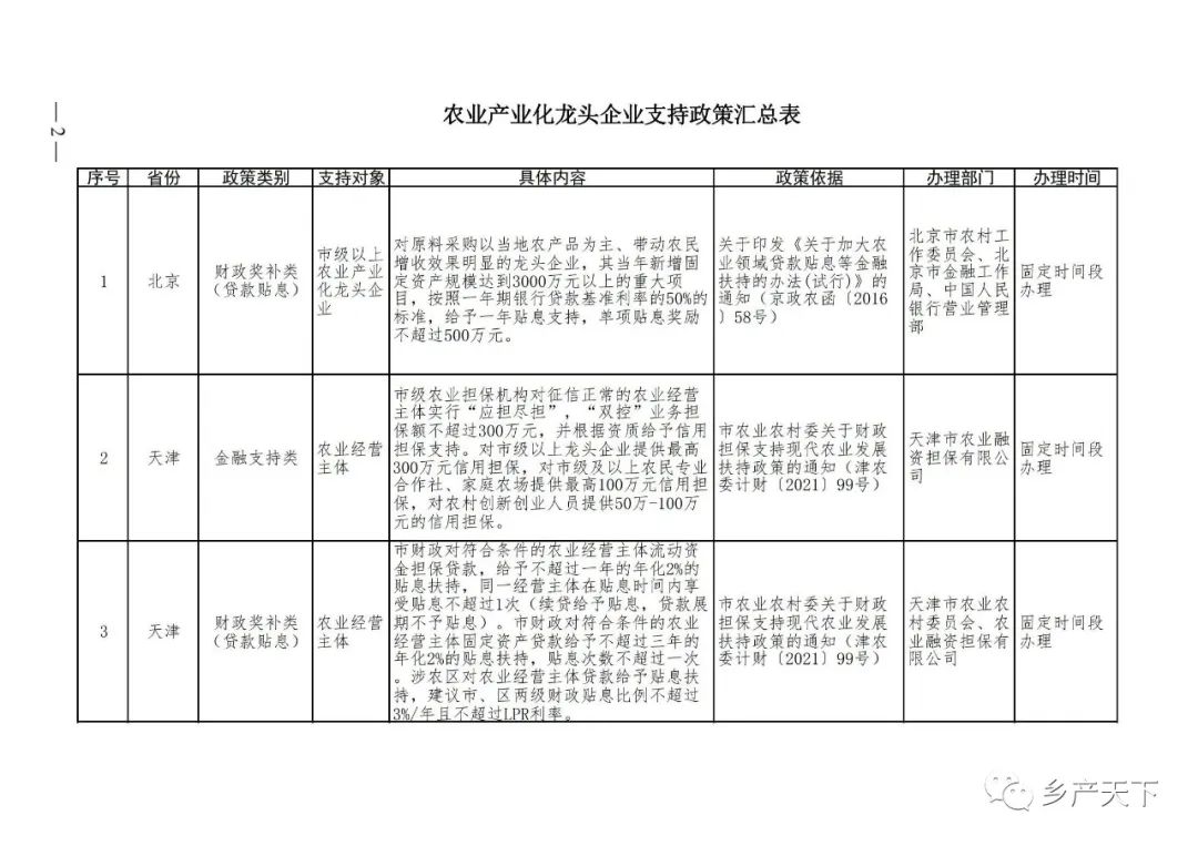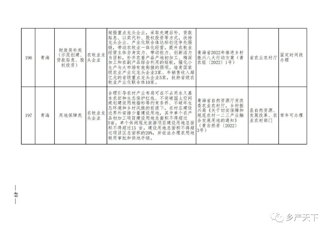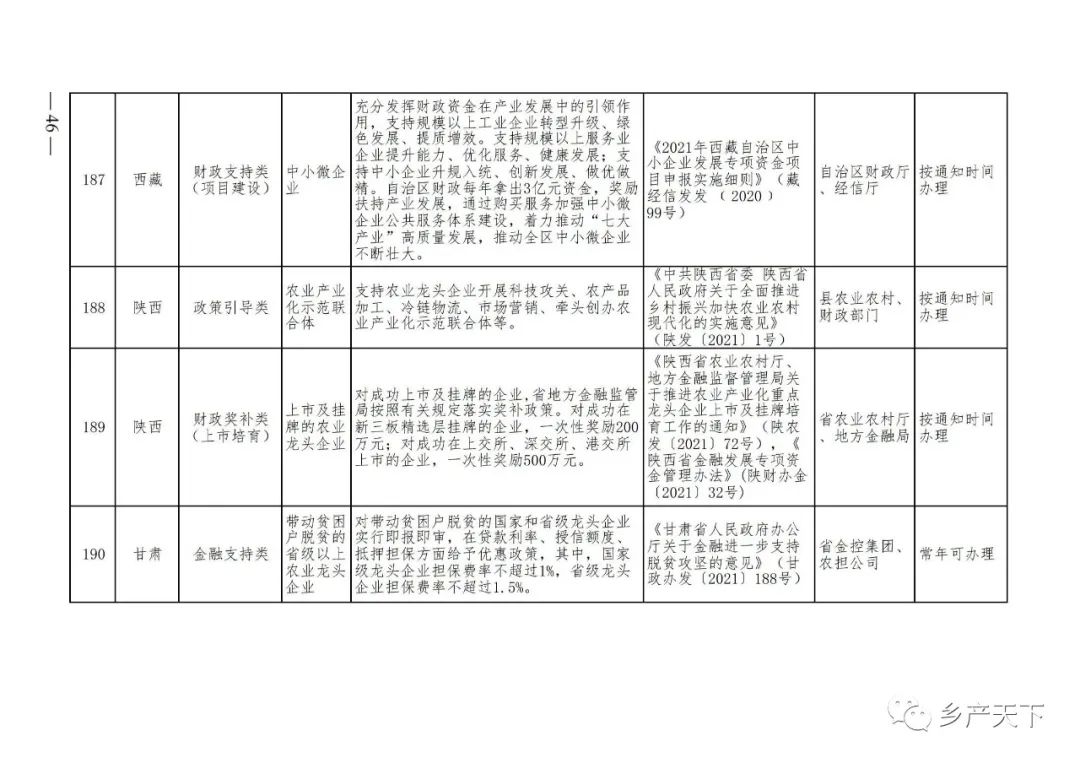 229項!各省支持農業產業化龍頭企業的政策都在這里